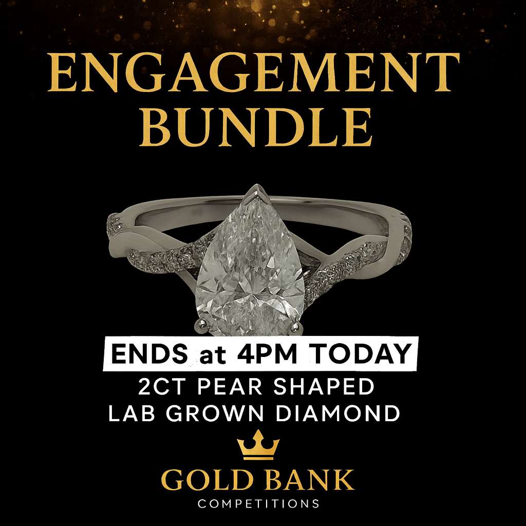Celebrate love in style with our ENGAGEMENT BUNDLE! One lucky winner will receive a stunning 2CT Pear Shaped Lab Grown Diamond Ring, perfectly set for that unforgettable proposal β and to top it off, weβre throwing in Β£150 cash to treat yourself to a romantic celebratory meal out!