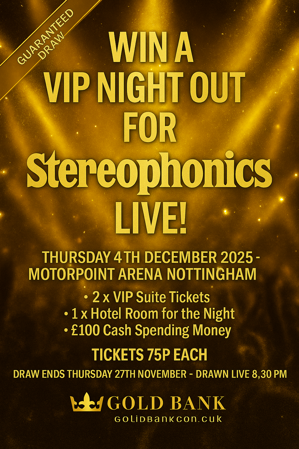 Get ready for an unforgettable night of live music as Gold Bank Comps gives you the chance to experience Stereophonics LIVE at the Motorpoint Arena Nottingham — in true VIP style!