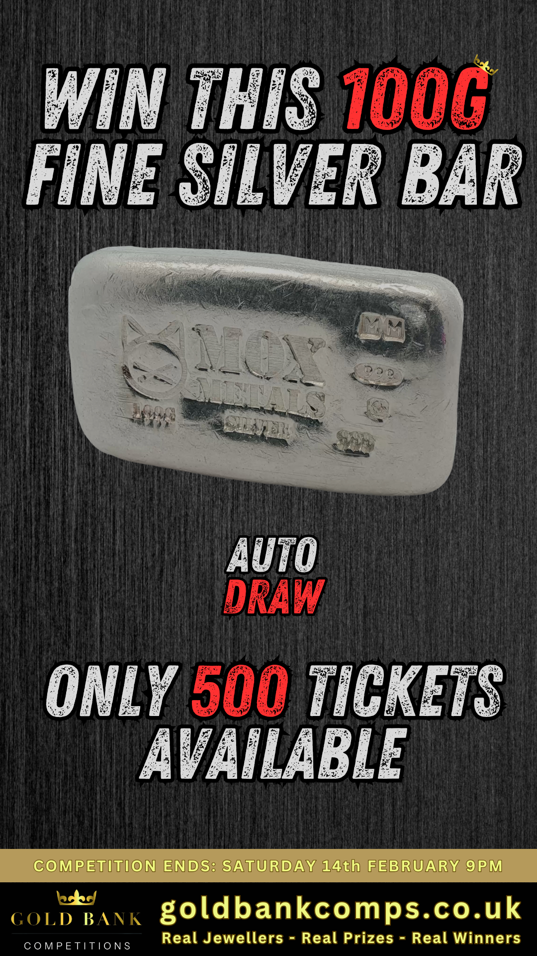 π― Just 99p to win a solid 100g bar of fine silver.