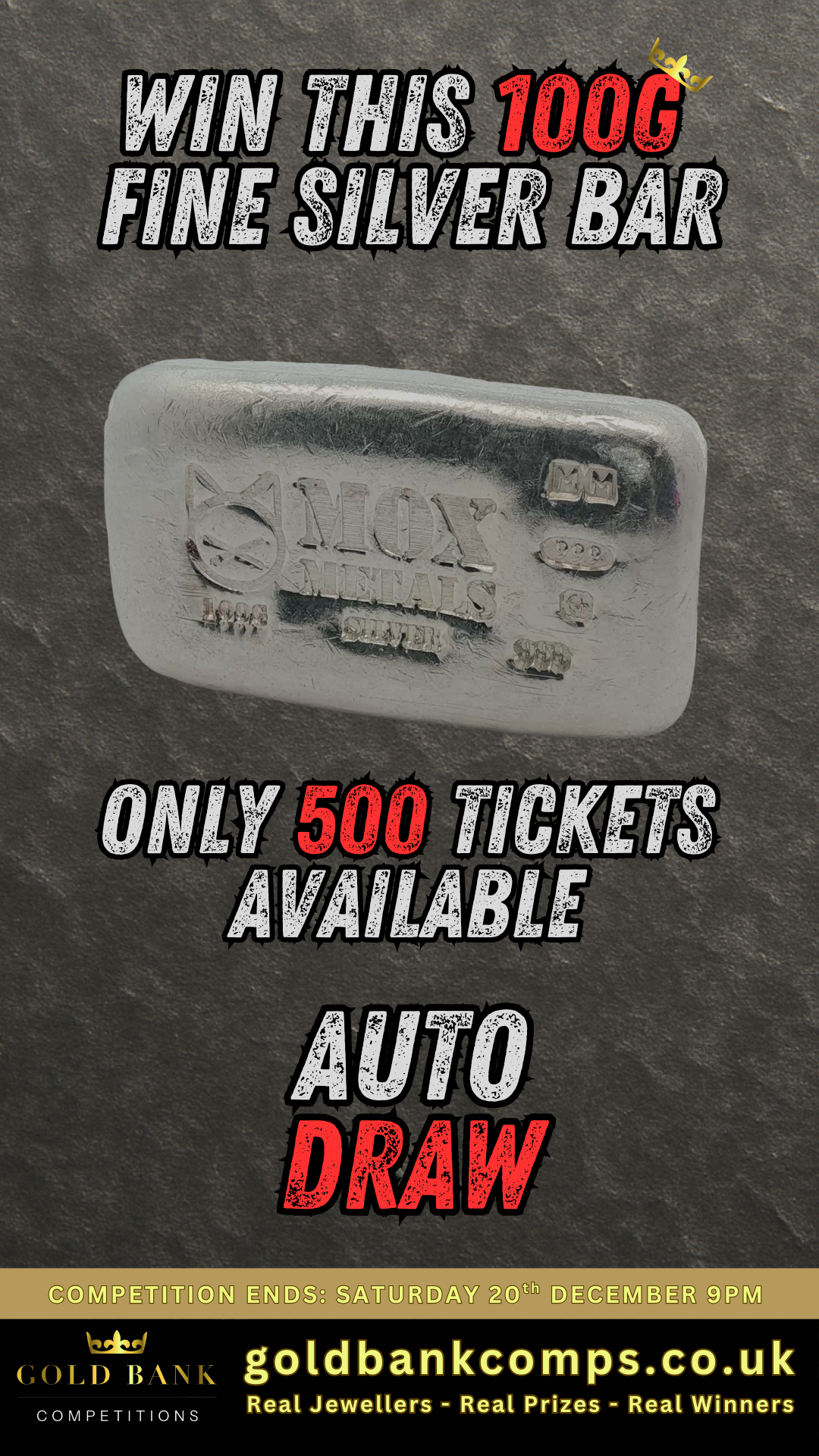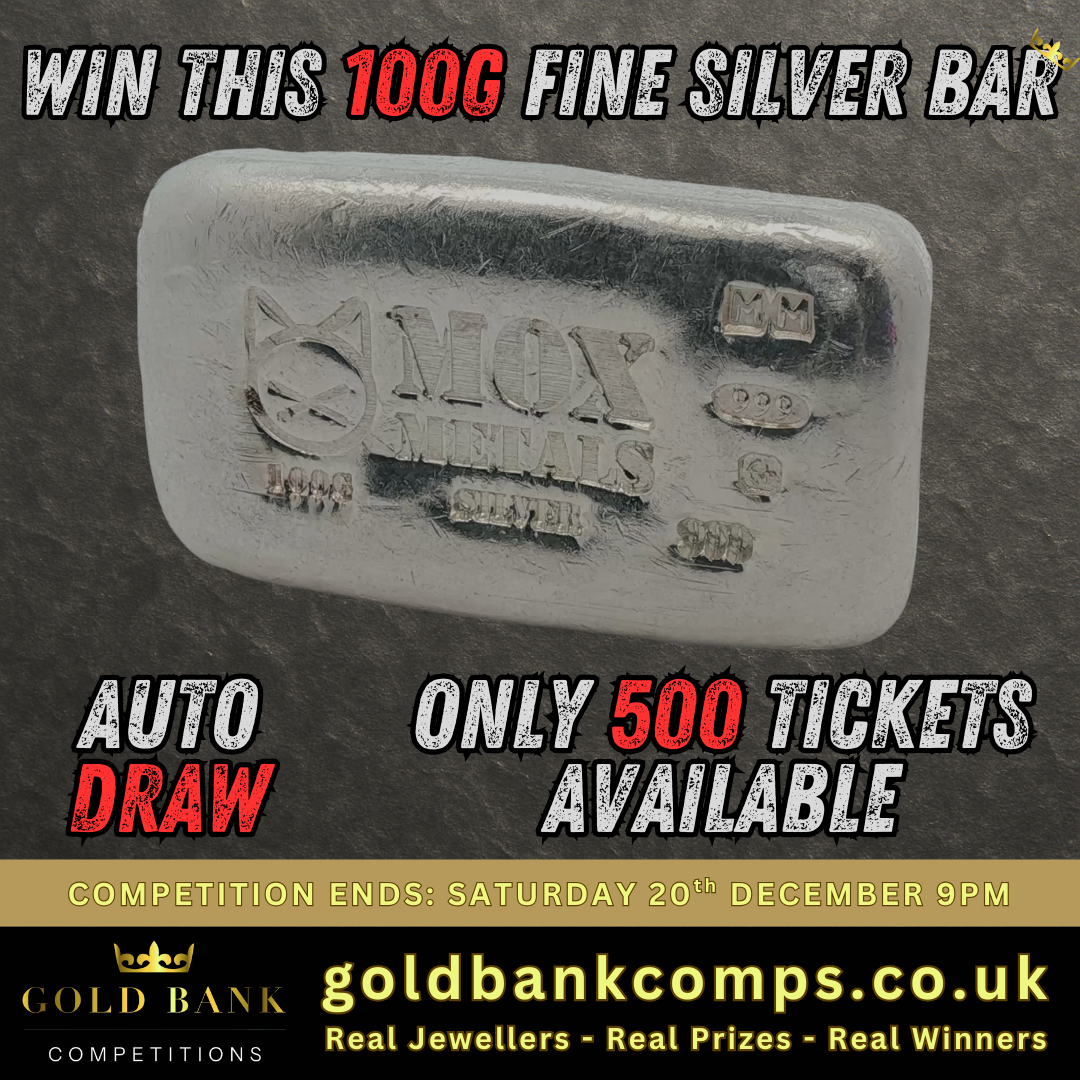 🎯 Just 99p to win a solid 100g bar of fine silver.