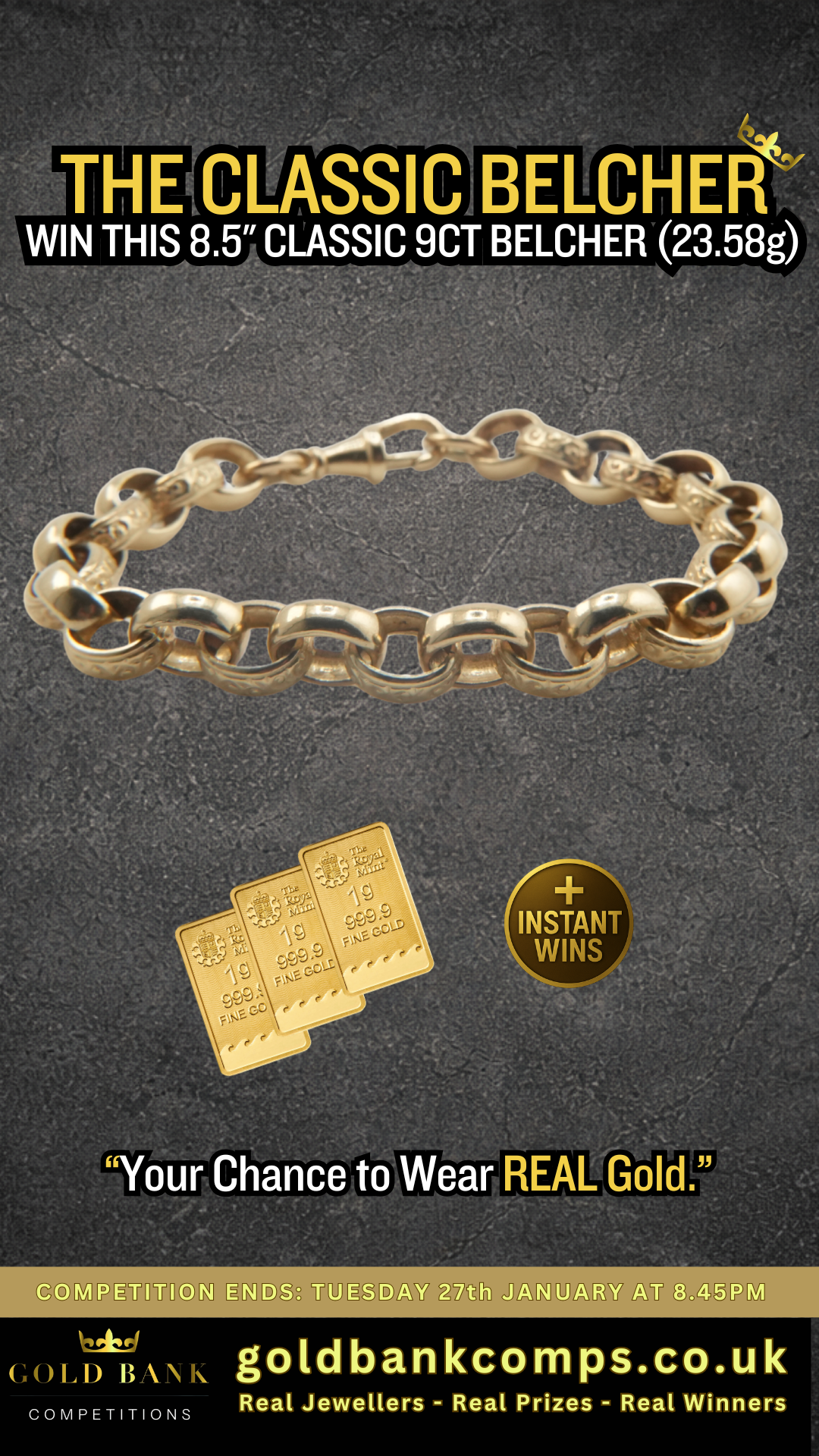 THE CLASSIC BELCHER – WIN THIS 8.5″ CLASSIC 9CT BELCHER (23.58g)Cash Alternative: £1000