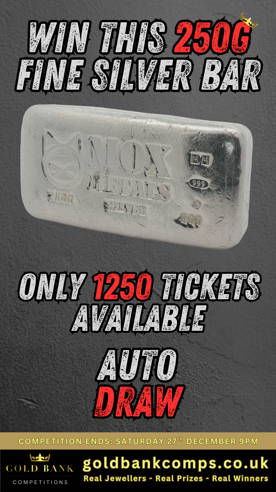 🥈 WIN THIS 250G FINE SILVER BAR – AUTO DRAW