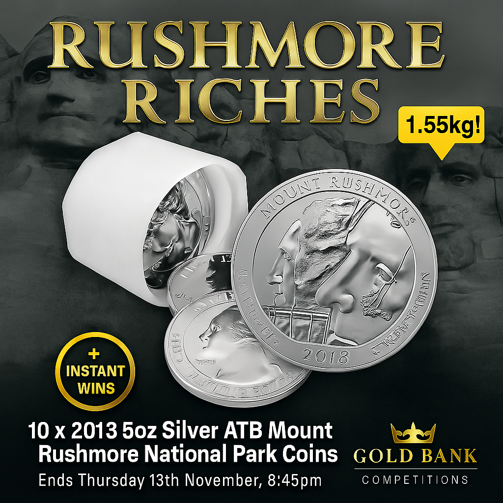 🏆 Main Prize: 10 × 2013 5oz Silver ATB Mount Rushmore Coins