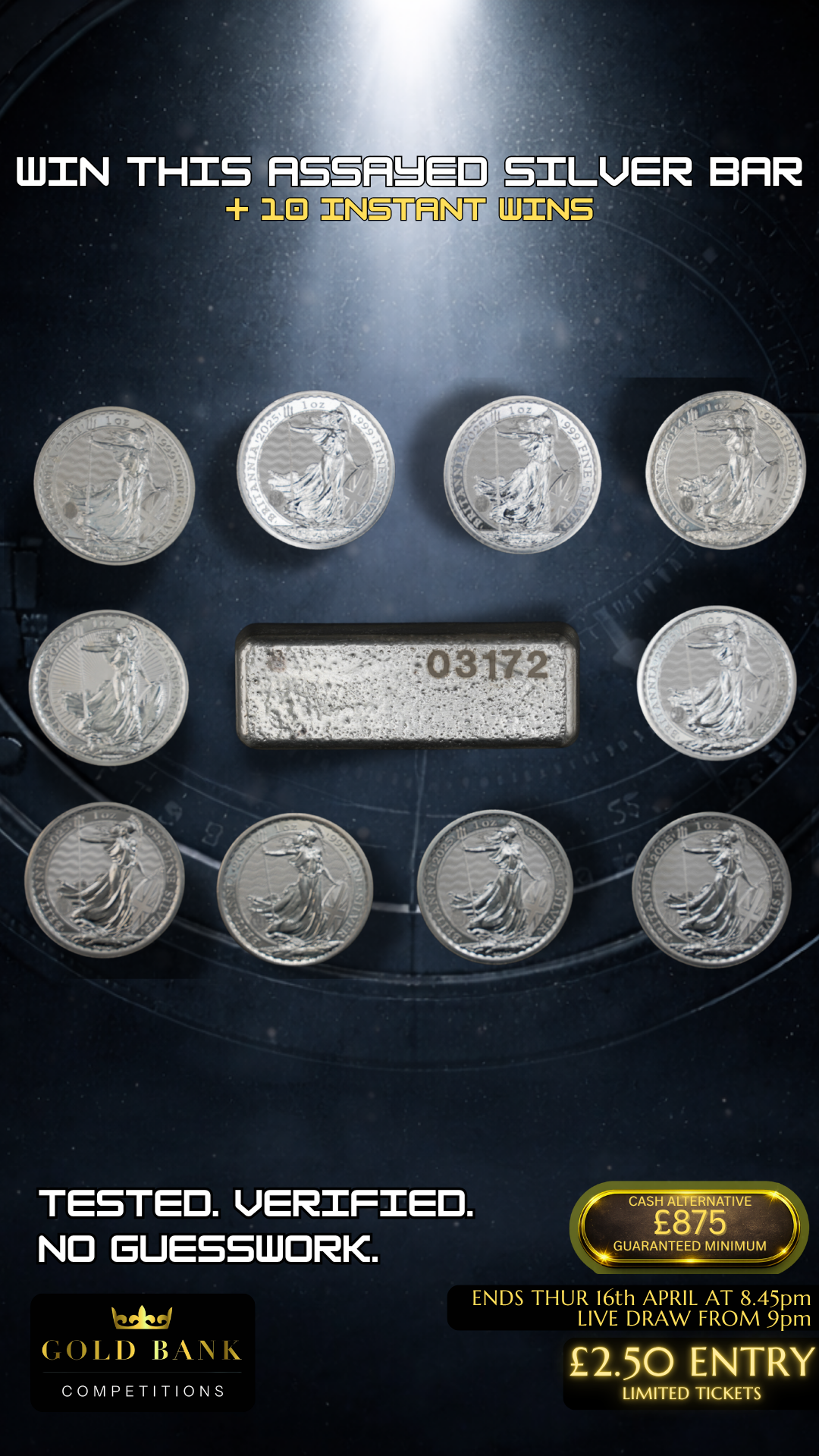 WIN THE ASSAYED SILVER BARCash Alternative: £875 - MINIMUM