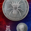 The reverse showcases a highly detailed spider design, capturing the tension and precision of a predator ready to strike. The finish highlights the texture and depth of the artwork, making it a standout piece in any collection.
