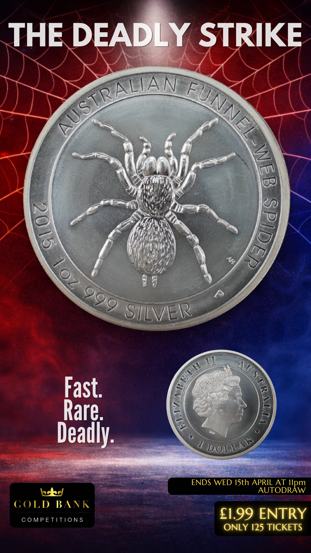 Struck from 1 troy ounce of .999 fine silver, this 2015 issue from The Perth Mint features one of Australia’s most feared creatures — the iconic spider — brought to life in stunning detail.