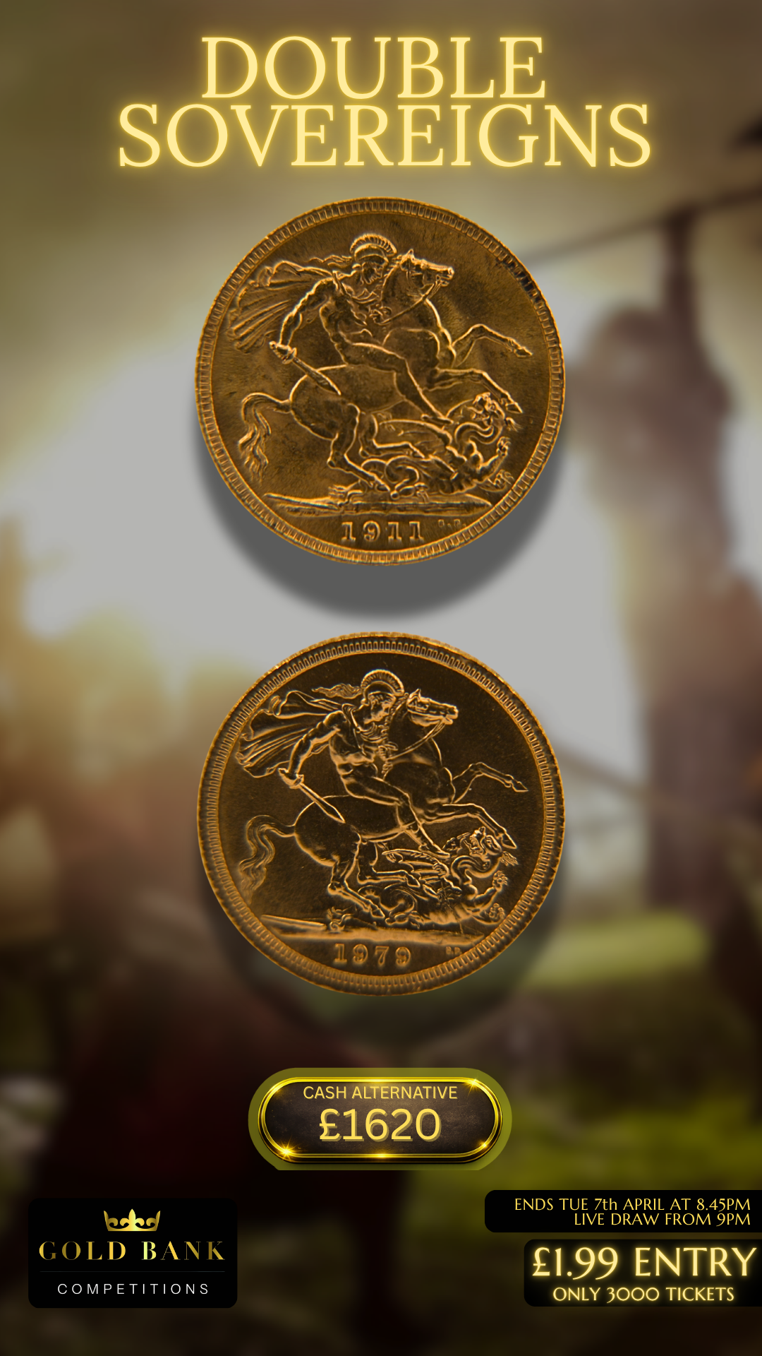 Two full sovereigns up for grabs — real gold, historic, and always liquid.
