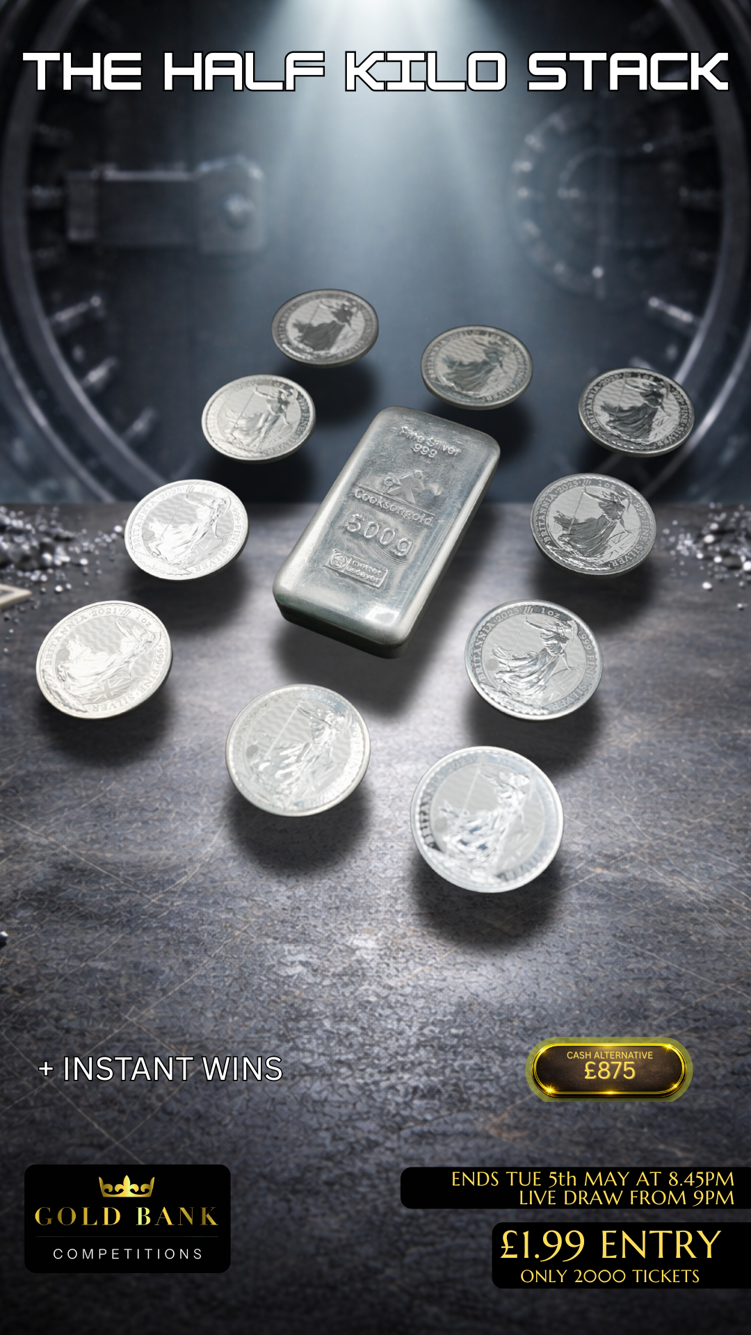 £875 cash alternative on the main prize!