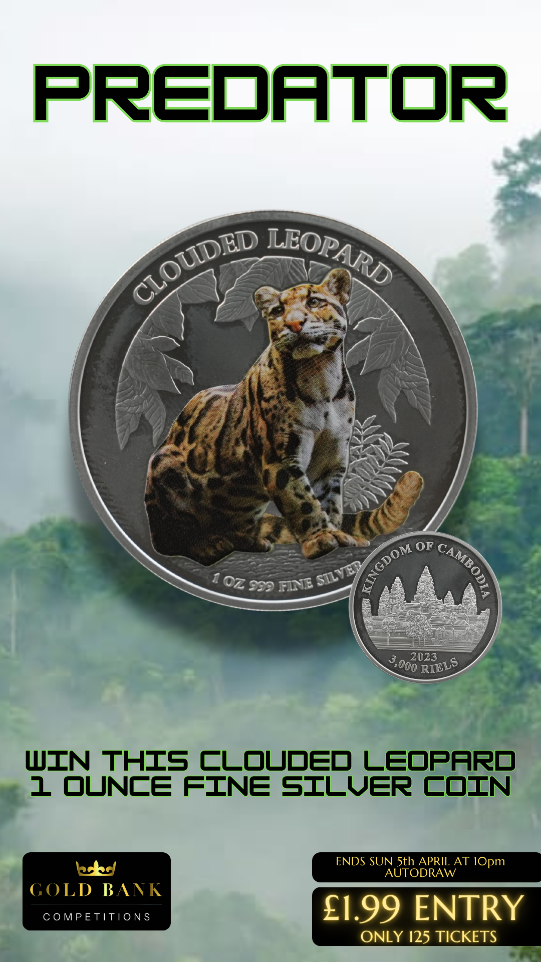 🐆 Clouded Leopard 1 oz Fine Silver Coin