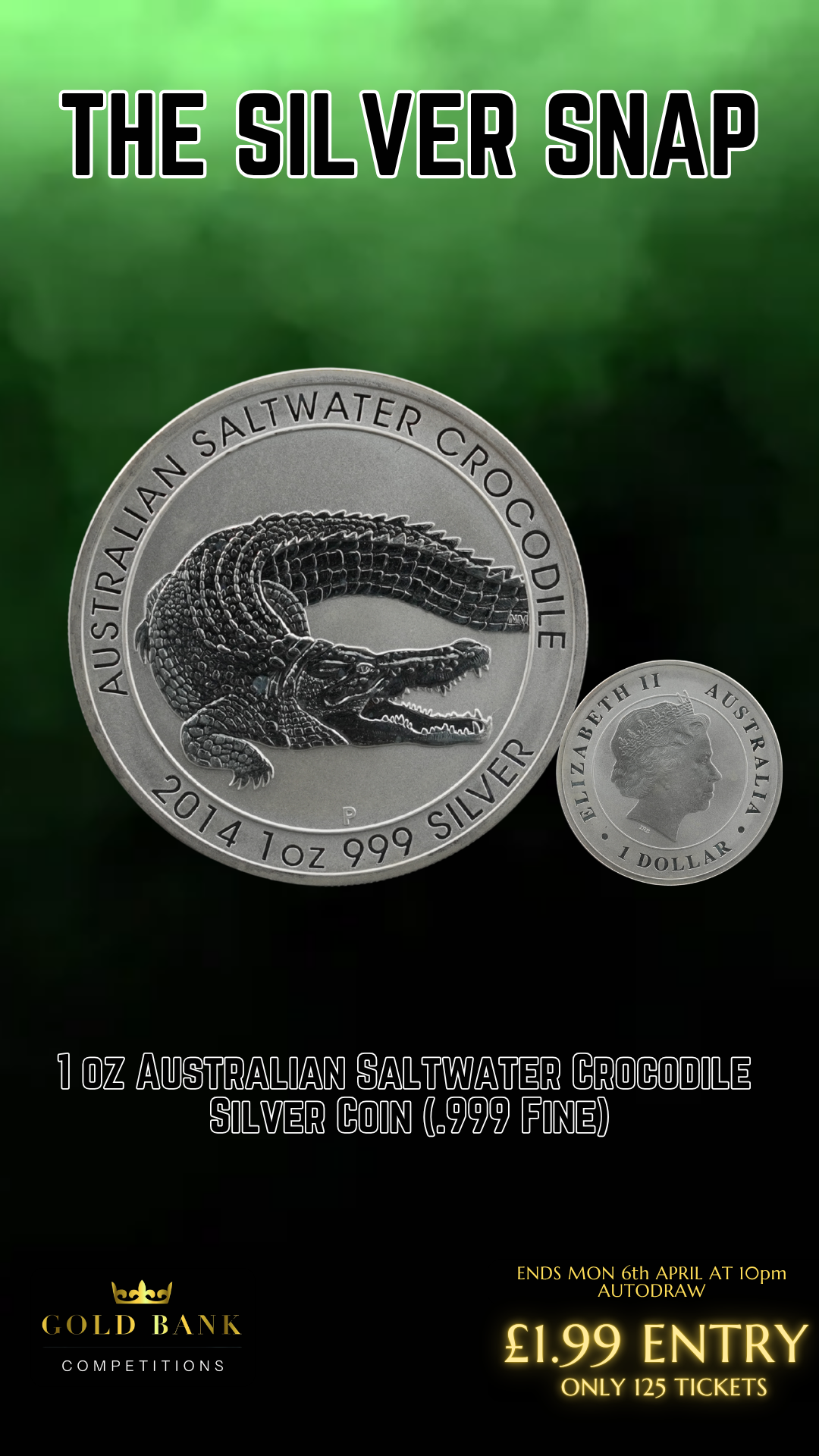A stunning 1 oz .999 fine silver Australian Saltwater Crocodile coin — sharp, aggressive, and seriously collectible.